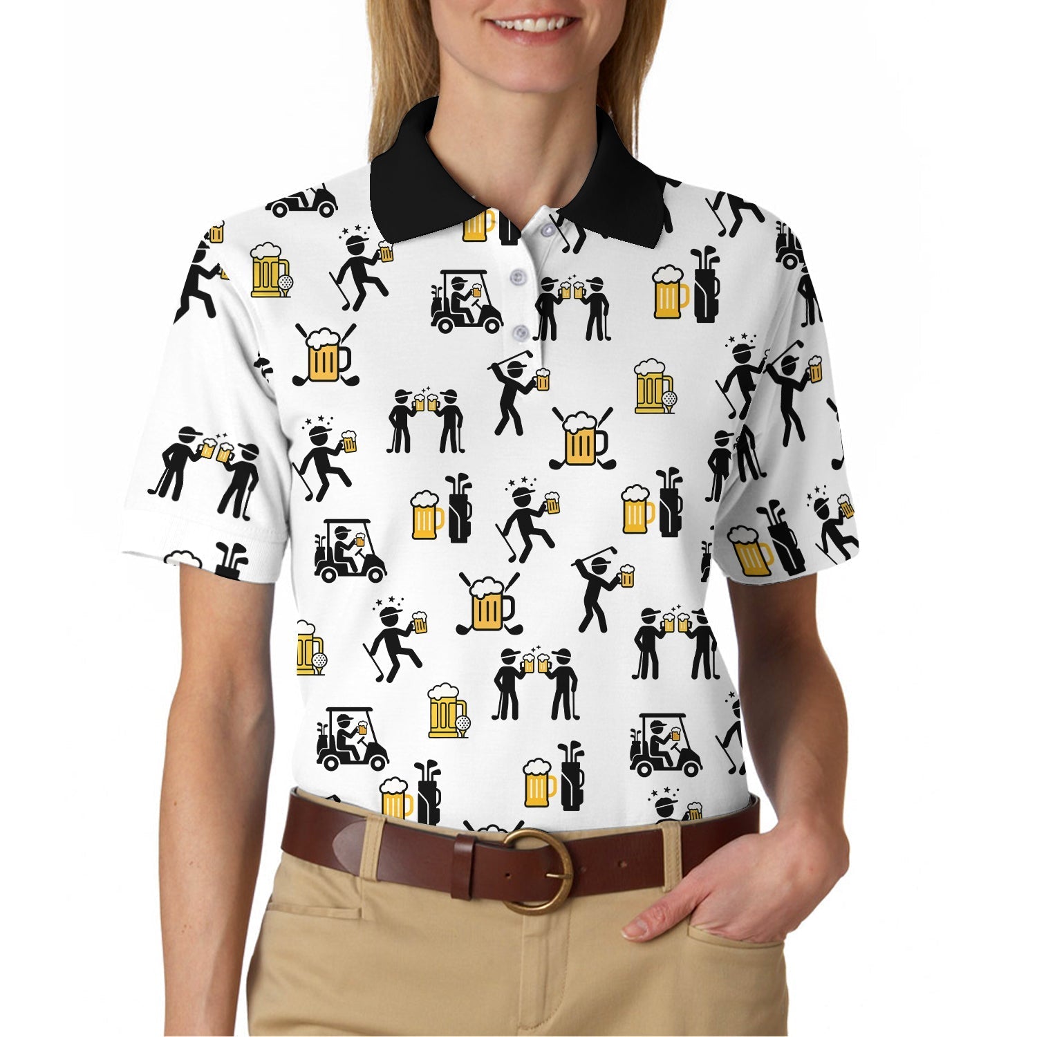 Beer Golf Shirt, Custom Golf Shirt With Funny Drinking & Golf Cart Pattern For Men