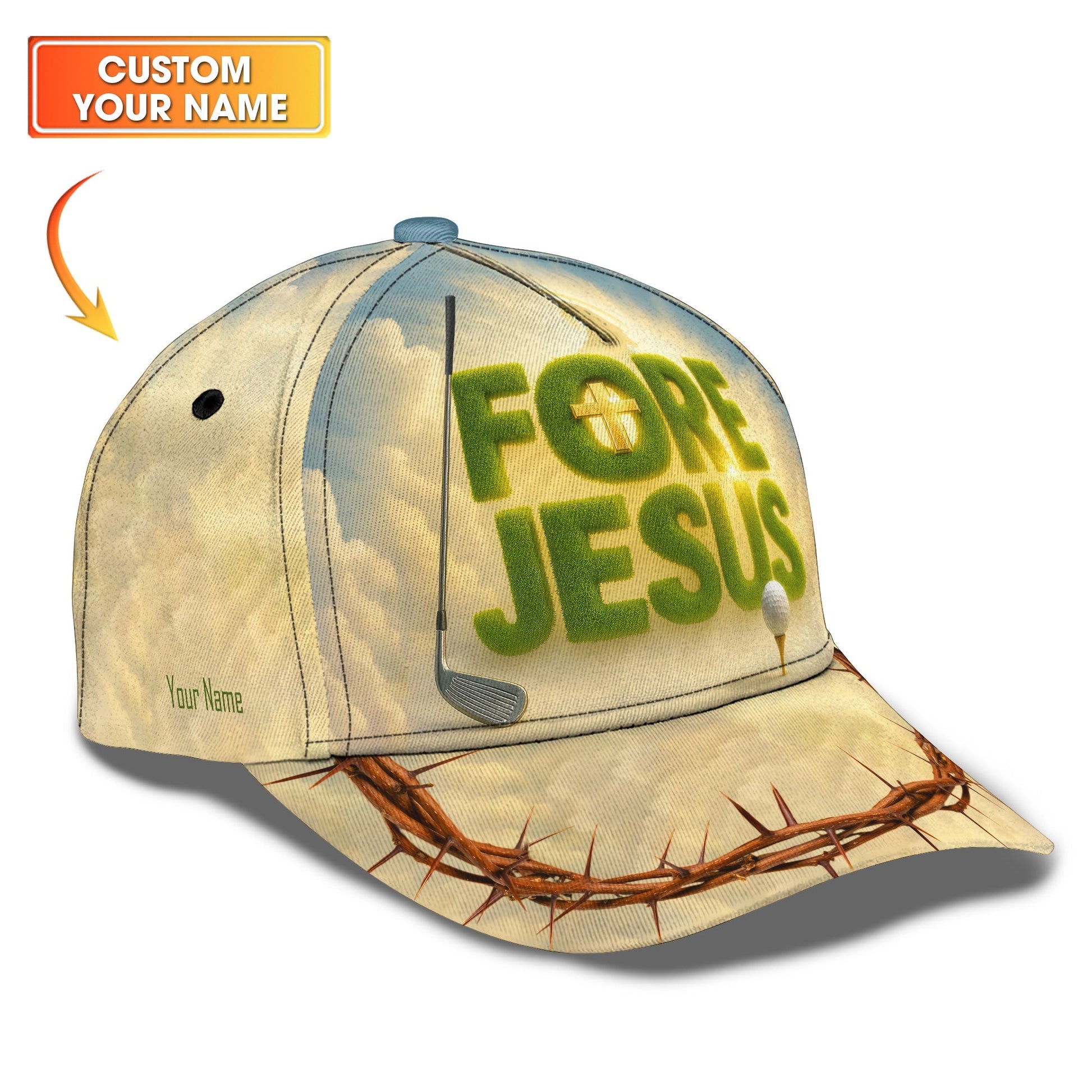 FORE JESUS Custom Golf Hat, Golf Jesus Classic Cap, Golf Gift For Men's
