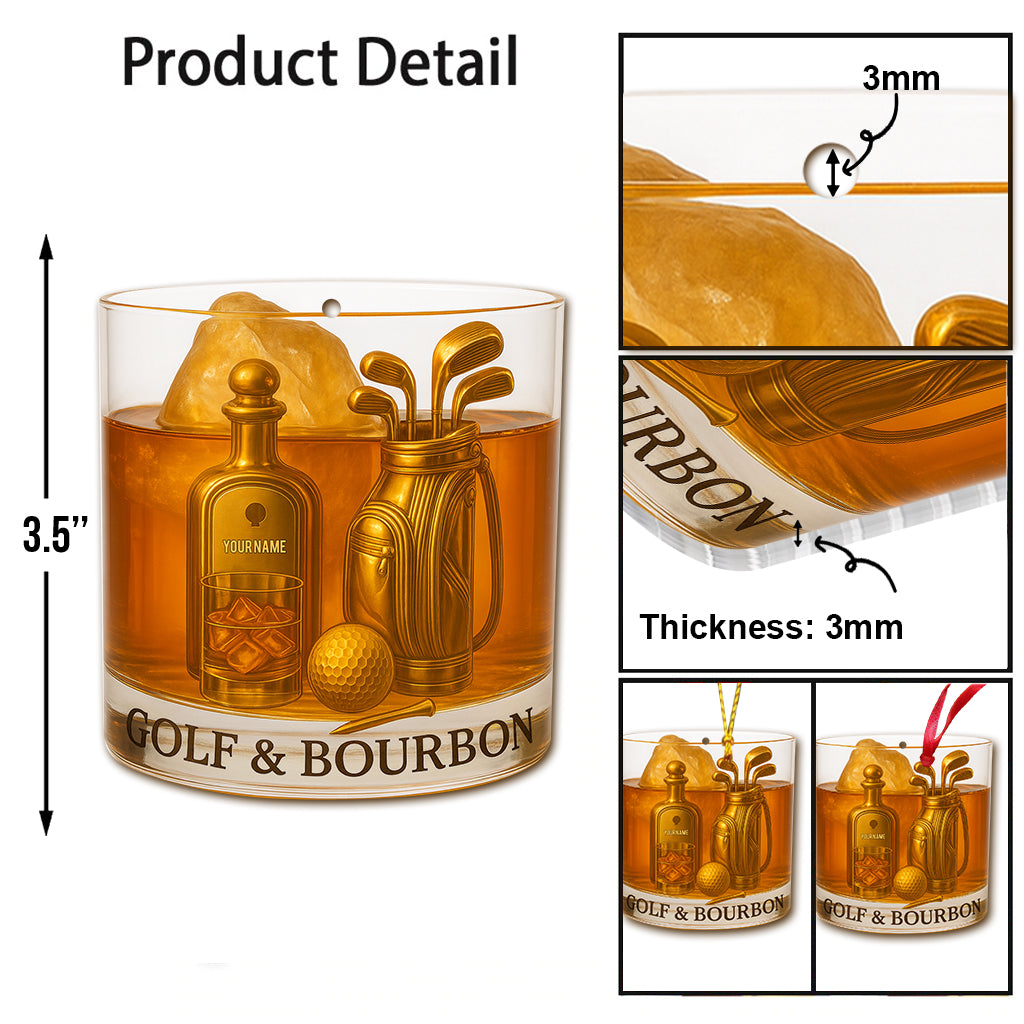 Personalized Golf And Bourbon Ornament, Bourbon Christmas Ornament, Golf Ornament, Golf Decor For Golfer