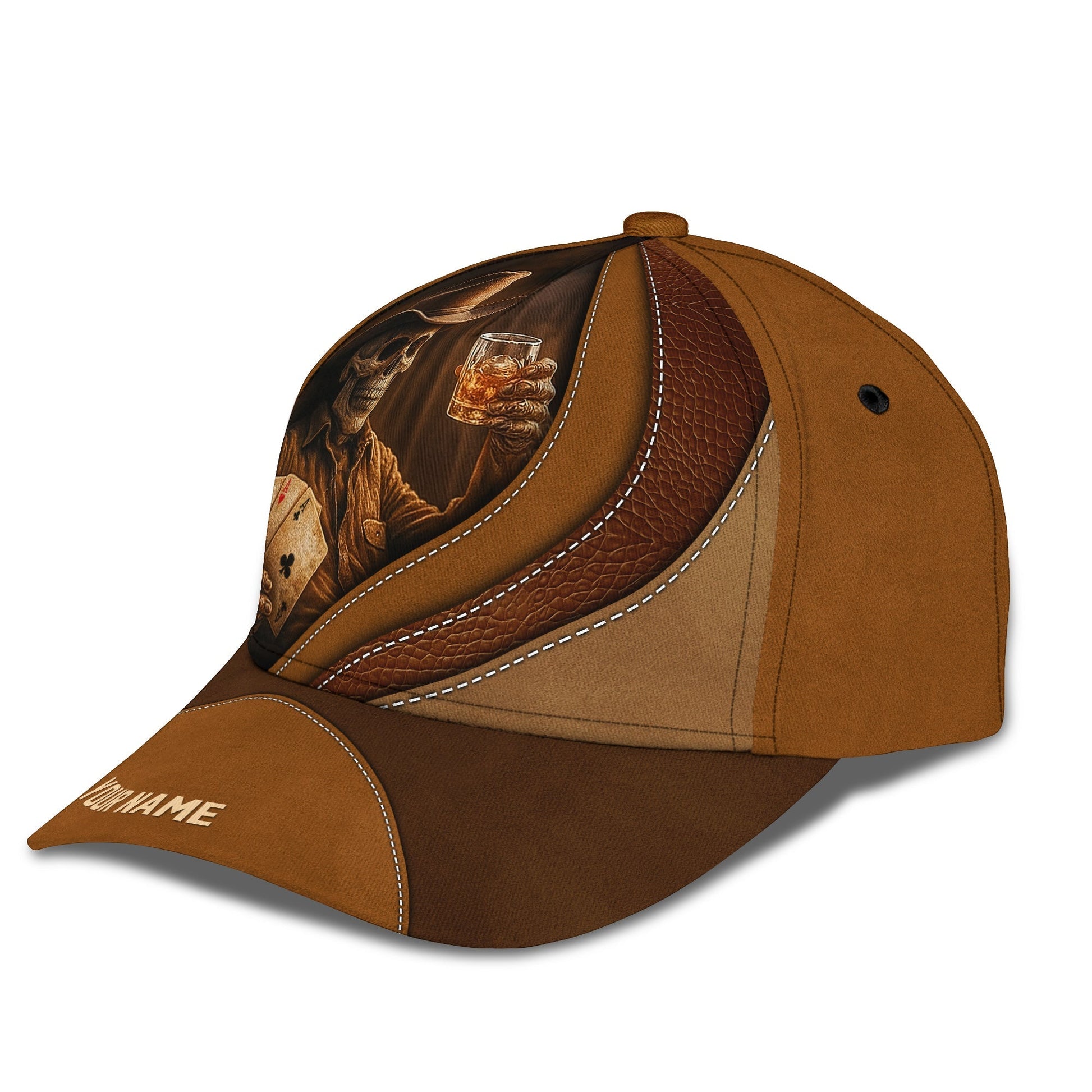 Skeleton Poker Hat, Texas Holdem Poker Cap, Skeleton Playing Poker Classic Cap, Custom Name Gift For Card Players